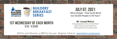 The 6th meeting of the 2021 Builders Breakfast Series will be Wednesday, July 7th 8:30-9:30am and will feature: